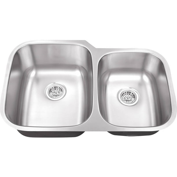 Allora USA - LD-3221 Kitchen Sink - 32" x 20 1/2" x 9/8" Undermount Low Divider Double Bowl 18 gauge Stainless Steel Kitchen Sink