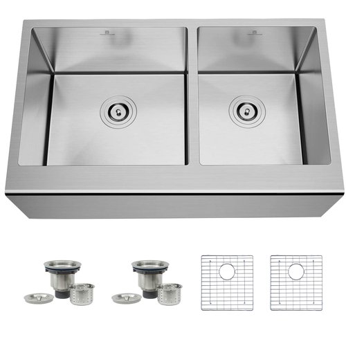 Trustmade 33 x 20 Inches Apron Farmhouse Double Bowl 60/40, 16 Gauge Stainless Steel Kitchen Sink (33" X 20" X 10")