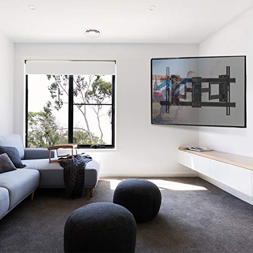MI-4481 fits TVs with VESA pattern from 100x100mm to 400x400mm, screens up to 55", and holds up to 66lbs Dual split wall brackets make it ideal for corner mounting Full-motion mount can tilt, swivel and extend for the perfect positioning Great for corner or flat wall TV mounting Overview This full motion dual arm TV mo