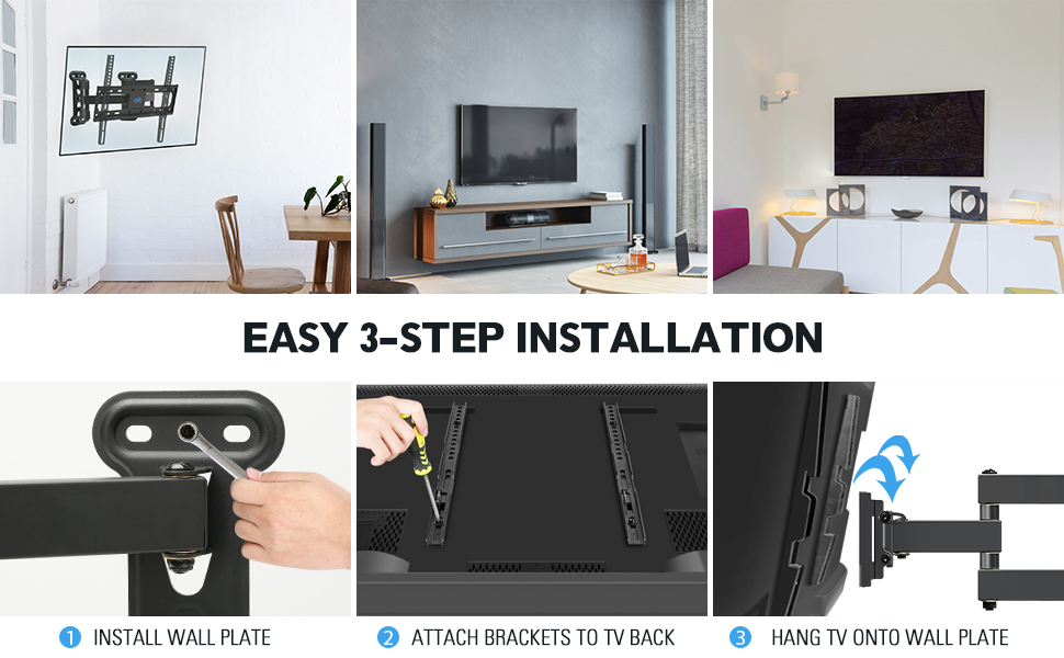 Step 1. Be sure that the corner wall-mount bracket and hardware are sufficiently rated to hold your particular television. A flat-screen TV set weighing more than 125 pounds should be mounted with a dual-arm bracket. Smaller sets can be wall-mounted using a single-arm bracket. MI-4481 fits TVs with VESA pattern from 100x100mm to 400x400mm, screens up to 55", and holds up to 66lbs Dual split wall brackets make it ideal for corner mounting Full-motion mount can tilt, swivel and extend for the perfect positioning Great for corner or flat wall TV mounting Overview This full motion dual arm TV mo 👋 Hey, welcome to the UK's largest shopping community! More than 2.40 million people, like you, have joined our community to share more than 2.55 million verified deals, leading to over 41.93 million conversations between people sharing their expertise, tips and advice.