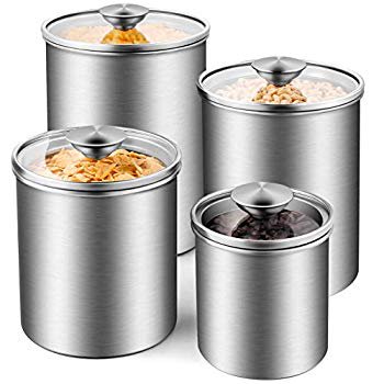 Quality 4pc Stainless Steel Canister Set for Kitchen Counter with Glass Window & Airtight Lids, Food Storage Containers, Pantry Storage & Organization ...