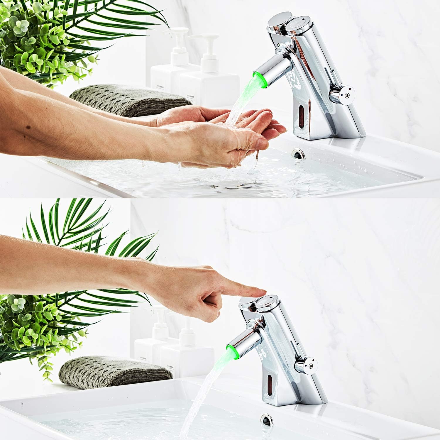 Anmonclean Touchless Sink Faucet Bathroom Automatic Sensor Faucet AC/DC Powered Hand Free Bathroom Faucet, Chrome