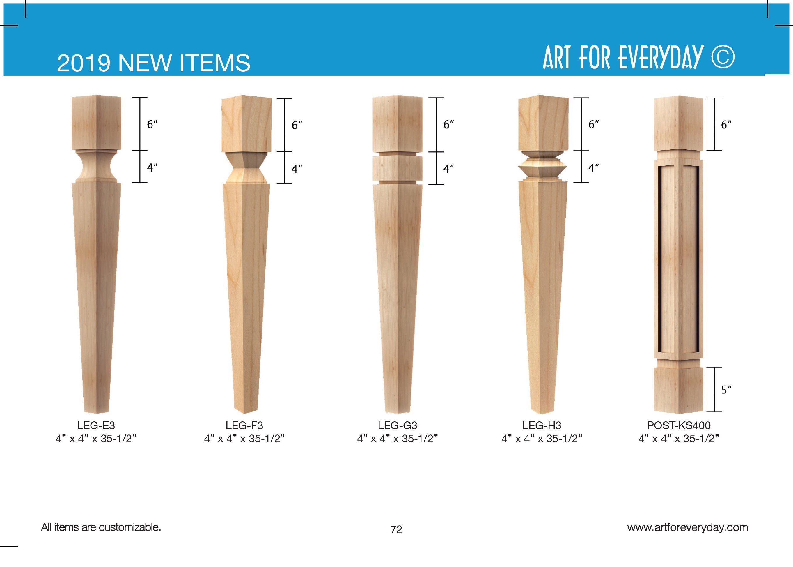 Adams Wood Products stocks a Huge selection of Unfinished Wooden Kitchen Island Legs in Multiple Sizes and Variations of the following Styles: Turned, Fluted, Roped, Reeded, Octagonal, Tapered, Square, and Vanity. A0900 - island leg.