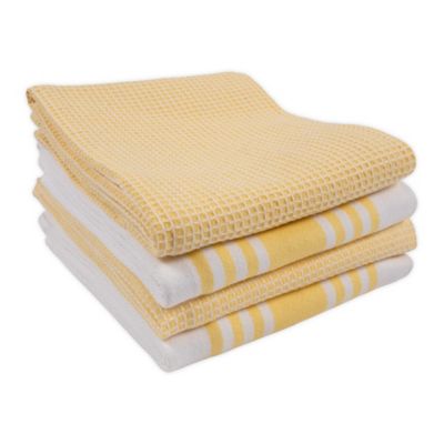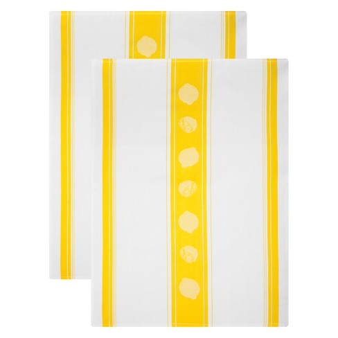 KitchenAid Albany Yellow Kitchen Towel Set... - The Home Depot The set includes two solid yellow kitchen towels and two yellow and white striped towels that measure 16 in. wide x 26 in. long. The solid towel is made with highly absorbent cotton and works well for wiping spills, cleaning countertops, and drying dishes since it is...