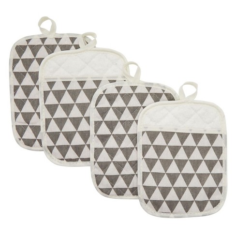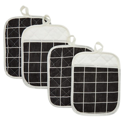 Okuna Outpost 4 Pack Black Grid Pot Holders, Hot Pads for Kitchen Counter, Pan Handles Heat Resistant, 7 x 8.5 in