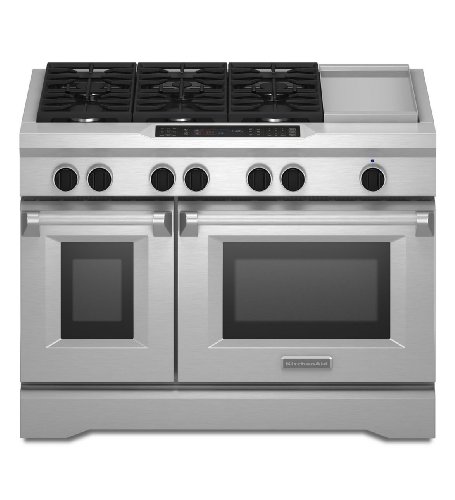 KitchenAid 48'' Smart Commercial-Style Dual Fuel Range... | The Brick This dual fuel range combines a powerful six-burner cooktop with an electric double oven so you can cook for a Reviews. Product Description. Satisfy your craving to create with this stunning 48-inch Dual-Concentric Oven Knob: Two knobs in one let you first choose Bake, Broil or Convection, and...