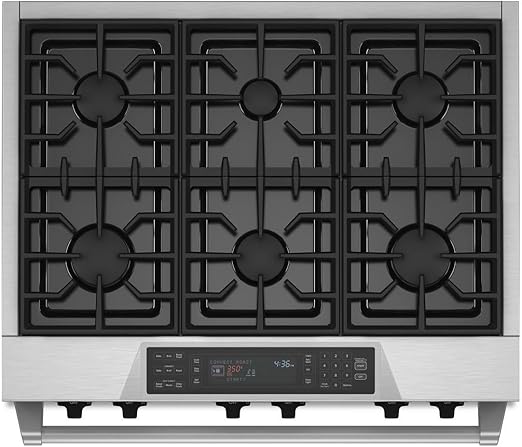 KitchenAid 36 in. 5.1 cu. ft. Smart Dual Fuel Range with True... KitchenAid Commercial Style Range with 6 burners. This dual fuel range combines a gas cooktop with the even baking of an electric oven. Dual Fuel Range satisfies the needs of the most demanding cooks by combining the precise control of a gas cooking surface with the even baking, roasting and...