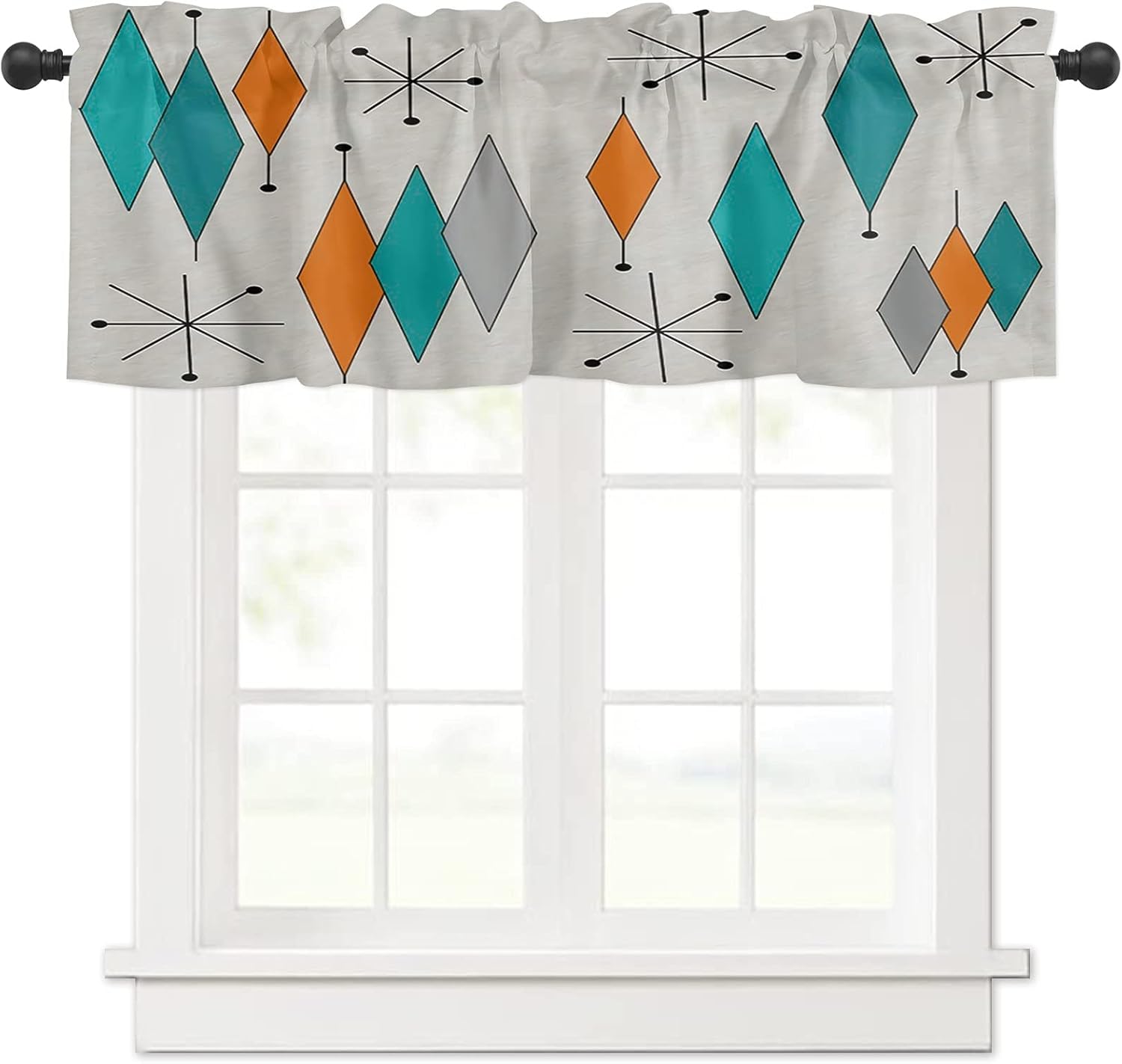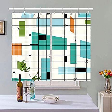 Amazon.com: mid century modern kitchen curtains Vintage Mid Century Diamond Kitchen Curtain, Mid-Century Modern Mid Retro Grid and Orange Century Window Curtain Valance for Kitchen Small Cafe Curtains for Window Treatment Set with Hooks, 55X39 IN.