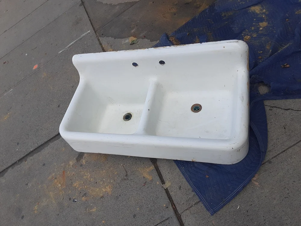 Antique Cast Iron White Porcelain Deep Shallow Double Basin Farm SInk 182-19E **PICK UP ONLY or buyer arrange shipping**Oneonta, Ny 13820