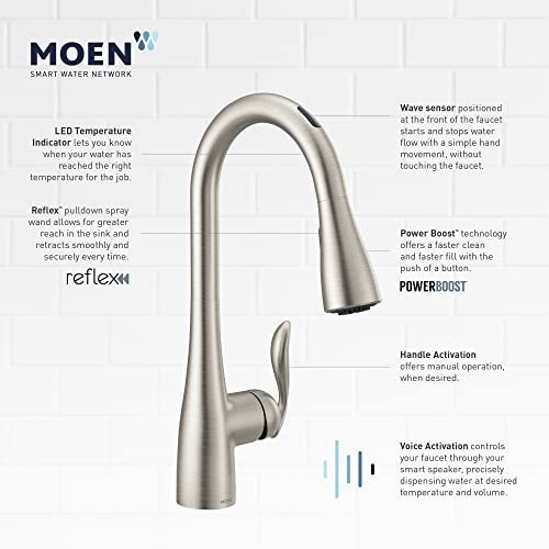 Moen 7594ESRS Arbor Motionsense Two-Sensor Touchless One-Handle Pulldown Kitchen Faucet Featuring Power Clean, Spot Resist Stainless