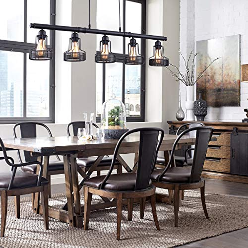 LOG BARN Kitchen Light Fixtures, Farmhouse Chandelier for Kitchen Island in Rustic Faux Wood with Black Wires, 5-Light Pendant Lighting for Dining ...