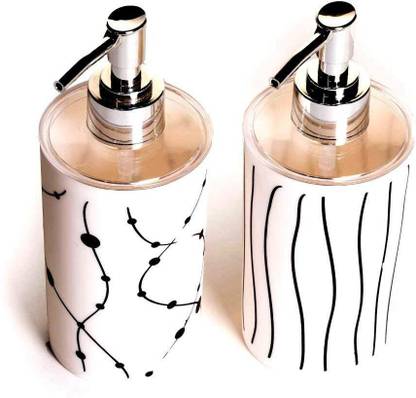 WDS ®Liquid Soap Dispenser Bottle Set with Pump for Handwash in Bathroom Kitchen Sink, White Plastic Body & Chrome Finish Top(Pack of 2) 350 ml Soap, ...
