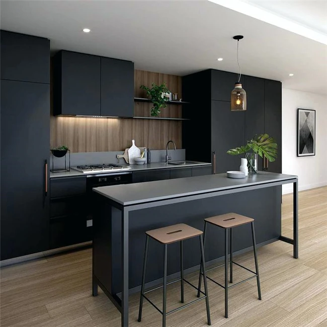 Factory Direct Sale New Home Furnishings Wooden Products Veneer Lacquer Finish Handleless Design Kitchen Cabinets with Kitchen Island