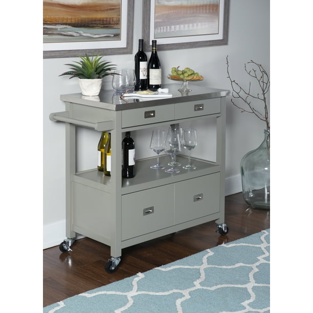 Stainless Steel Top Portable Kitchen Cart/island - Crosley ... The contemporary stainless steel top expands your serving and countertop space while the built-in cabinet and drawer offer extra storage. Raised panel detailing provides the ultimate in style to dress up any space. Style, function, and quality make this portable kitchen island a versatile, must-have addition to your home.