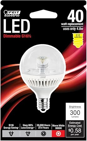 Feit BPG161/2/CL/DM/LED 40W Equivalent G16.5 Candelabra Base LED Light, Clear - Flood Lighting ...