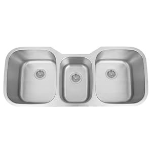 Kitchen Fixtures Chicago, IL | Allied PHS In addition, the two bowls are different sizes, giving one dominance over the other. Elkay Harmony Stainless Steel Triple Bowl Undermount Sink The Harmony Stainless Steel Triple Bowl Undermount Sink measures 39.5 inches by 20 inches by 10 inches. It features a lustrous satin finish, 304-grade stainless steel, and sides and bottom pads.