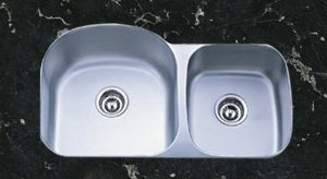 33 Inch Offset Topmount / Drop-in Stainless Steel Sink, Large Bowl ... Each sink is manufactured with an excellent sound-deadening system that absorbs and reduces the noise made by garbage disposal Luxurious brushed stainless steel finish cUPC, ANSI, IAPMO Listed Dimensions 33" x 22" (Overall Exterior) 15-3/4" x 19-5/8" x 9" (Left Interior Bowl), 13-3/4" x 17-1/4" x 8" (Right Interior Bowl) 9" (Depth)