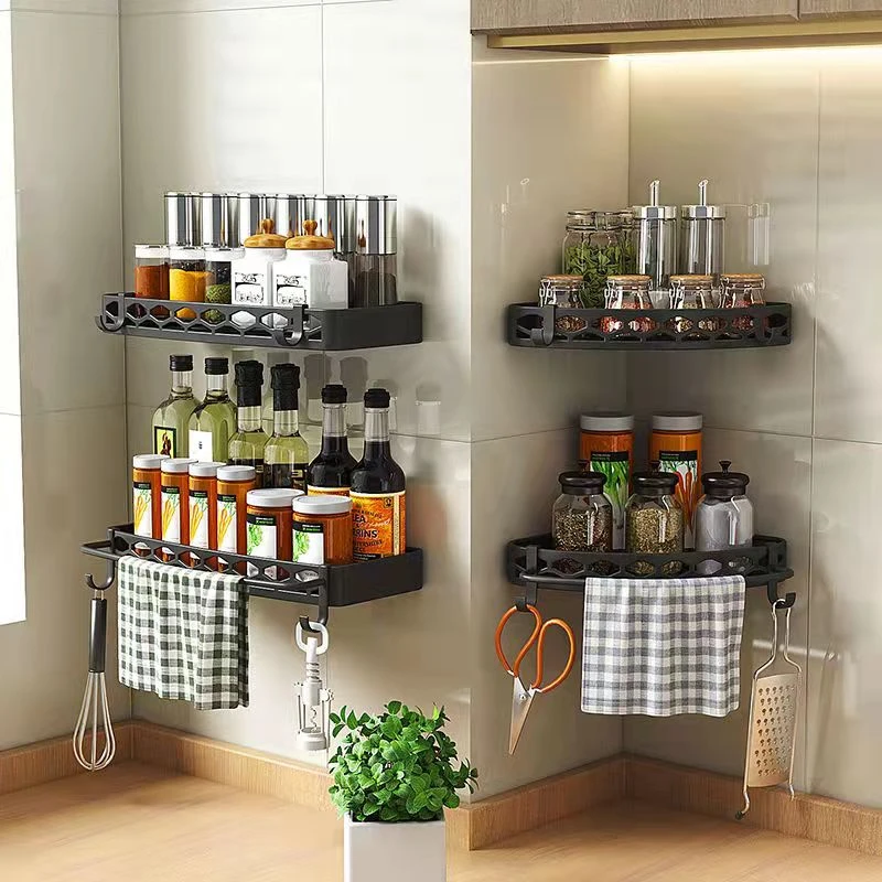 Kitchen Shelf Wall Shelf Tissue Box Aluminum Bathroom Corner Shelf Wall Mounted Kitchen Storage Holder Spice Rack Nail-free