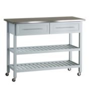 TRINITY EcoStorage® Stainless Steel Kitchen Cart | Costco The cart is NSF certified and provides a sturdy working surface for all your culinary needs. The 34" stainless steel top is designed with rounded edges and corners for kitchen safety. The sidebar with hooks can be used to hang your kitchen tools and gadgets. The handle makes it easily maneuverable and doubles as a towel holder. Kuhnhenn 53.5'' Wide Rolling Kitchen Cart with Stainless ... Available in a curated selection of classic finishes, this kitchen island strikes a rectangular silhouette showcasing recessed paneling, brushed nickel hardware, and four lockable wheeled feet. Two doors open to reveal shelved storage for pots, pans, serve ware, and linens, while three drawers offer out-of-sight storage for silverware, wine openers, candles, and more. Rounding out the design ...