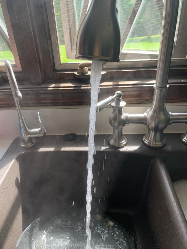 Parq 2-Handle Bridge Kitchen Faucet in Vibrant Stainless - The Home Depot This item: Parq 2-Handle Bridge Kitchen Faucet in Vibrant Stainless $1094.83 KOHLER Elmbrook 8 in. Widespread 2-Handle Bathroom Faucet in Polished Chrome $97.50 KOHLER Whitehaven Undermount Farmhouse Apron Front Self-Trimming Cast Iron 32.5 in. Single Bowl Kitchen Sink in White $1025.25 Specifications Finish Family Stainless Steel See Similar Items