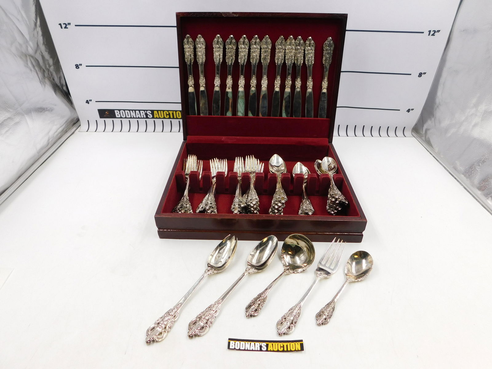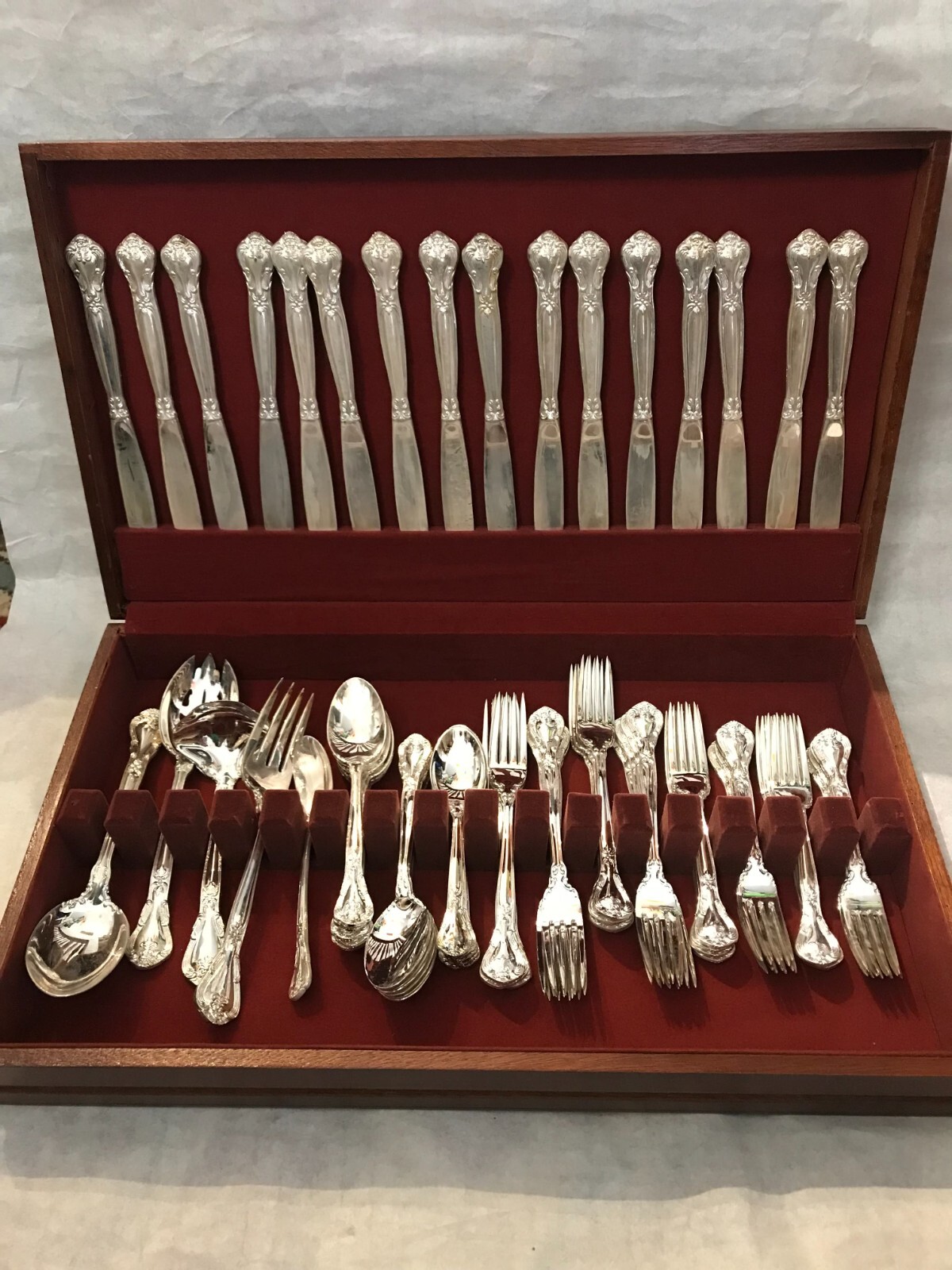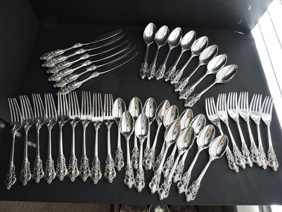 BAROQUE by GODINGER Silver Plate Flatware Set and Serving Pieces 82 ... Set includes: 15 knives 16 dinner forks 15 salad fork 15 tablespoons 16 teaspoons 1 large serving fork 1 large serving spoons 1 ladle 1 sugar spoon 1 large slotted serving spoons. The item "BAROQUE by GODINGER Silver Plate Flatware Set and Serving Pieces 82 Piece" is in sale since Tuesday, November 24, 2020.