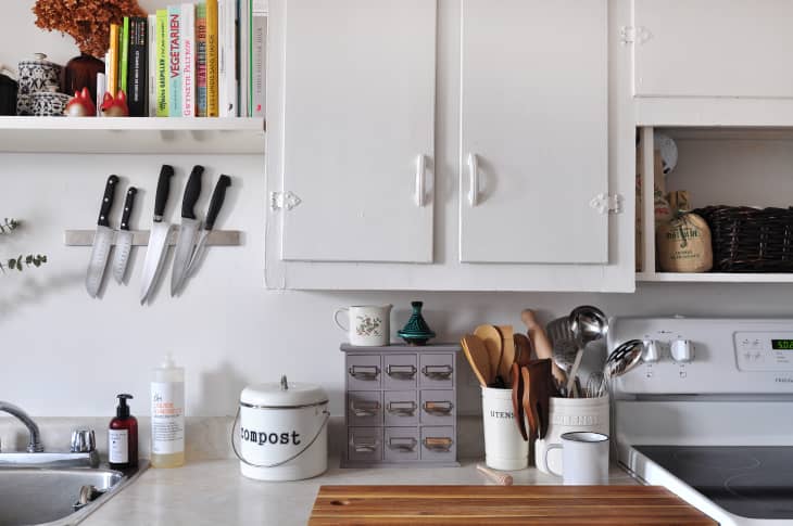 Take a Stab at Any One of Our Favorite Kitchen Knife Storage Ideas - Domino Smeg Knife Block, Crate and Barrel ($500) Shop ZWILLING Italian Magnetic Knife Block, Food52 ($150) Shop Try it out: Take the security of the magnetic strip and pair it with the convenience of a block with Zwilling's whitewashed wood pick. Appliance brand Smeg also makes a piece that can hold seven knives. 18 Best Kitchen Utensil Storage Ideas For Cooks And Non-Cooks Alike Using Knife Blocks Another highly recommended way to store knives is by using a knife block for drawers. This nifty invention keeps blades sharp and protected while taking up little counter space. It also looks pretty sleek on the kitchen counters or visually appealing when you pull drawers open. 6. DIY Caddy for Cooking Utensils