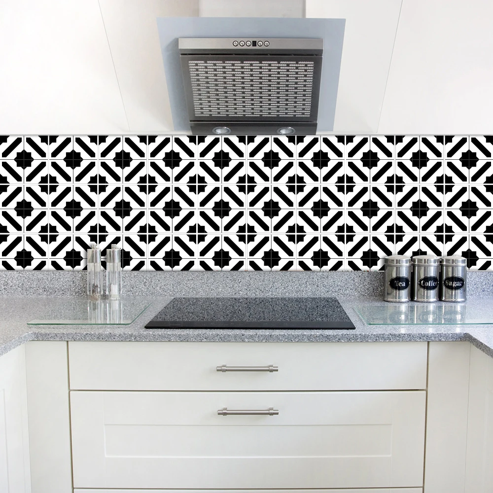 Black & White Matte Surface Tiles Wall Sticker Kitchen & Bathroom Floor Renovation Wallpaper Peel & Stick Ceramics Art Sticker
