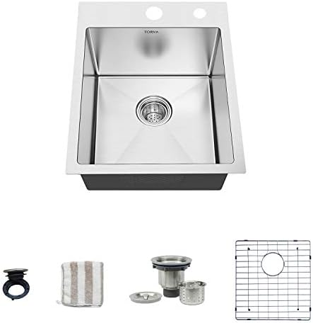 TORVA 15-Inch Drop-in Kitchen Sink, 16 Gauge Stainless Steel Topmount Single Bowl - 9 Inches Deep Bar/Prep Basin