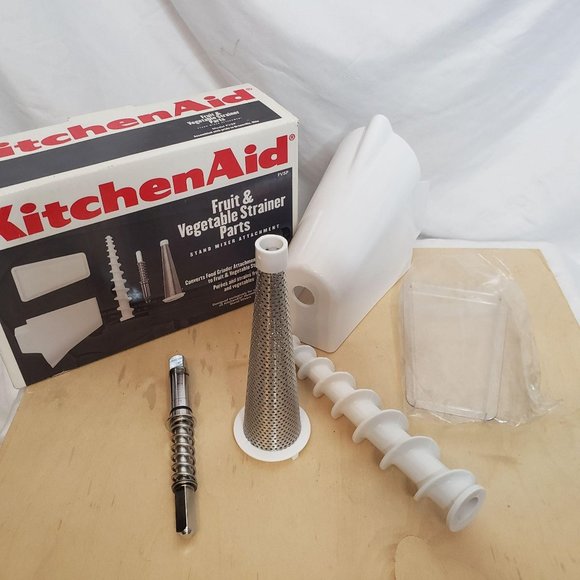 Fruit and Vegetable Strainer RKSMFVSP | KitchenAid The KitchenAid® Fruit and Vegetable Strainer attaches to the KitchenAid® Food Grinder Attachment*, and uses the power of the KitchenAid® Stand Mixer**, to help you create incredible homemade applesauce, jam or baby food in minutes. Once ingredients have passed through the grinder, the strainer cone removes any peels, leaving you with finely ...