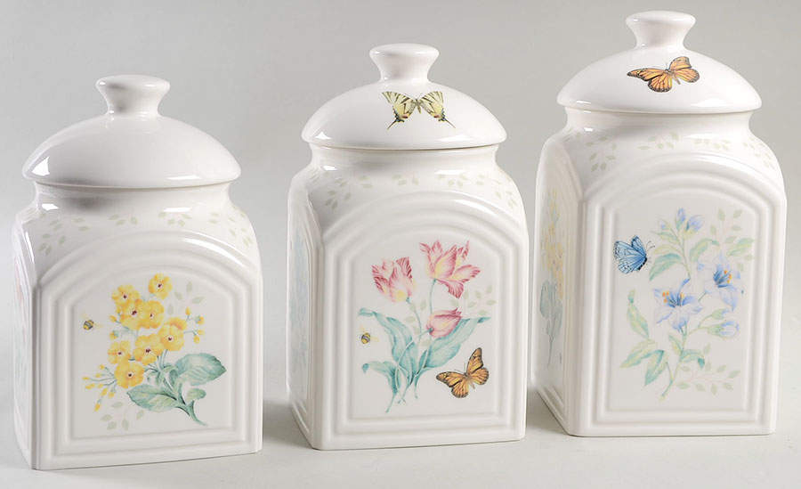 Butterfly Meadow 3-Piece Canister Set – Lenox Corporation Butterfly Meadow 3-Piece Canister Set. $215.00 $149.95 Out of Stock. You Save $65.05 (30%) 7 Reviews. Friends & Family Event! Extra 25% Off Sitewide - Use code FRIENDS. Lenox Butterfly Meadow Dinnerware Square Canisters Set Of Three Lenox Butterfly Meadow Dinnerware Square Canisters Set Of Three Set Only $139.95 Item# 888255L Size: 8.5/9/10" H, 5.25" L, 5.25 Hold cookies, candy, kitchen accessories and more in these must-have canisters from your favorite collection. This Butterfly Meadow set comes with three canisters in different sizes that nestle nicely on your countertop.