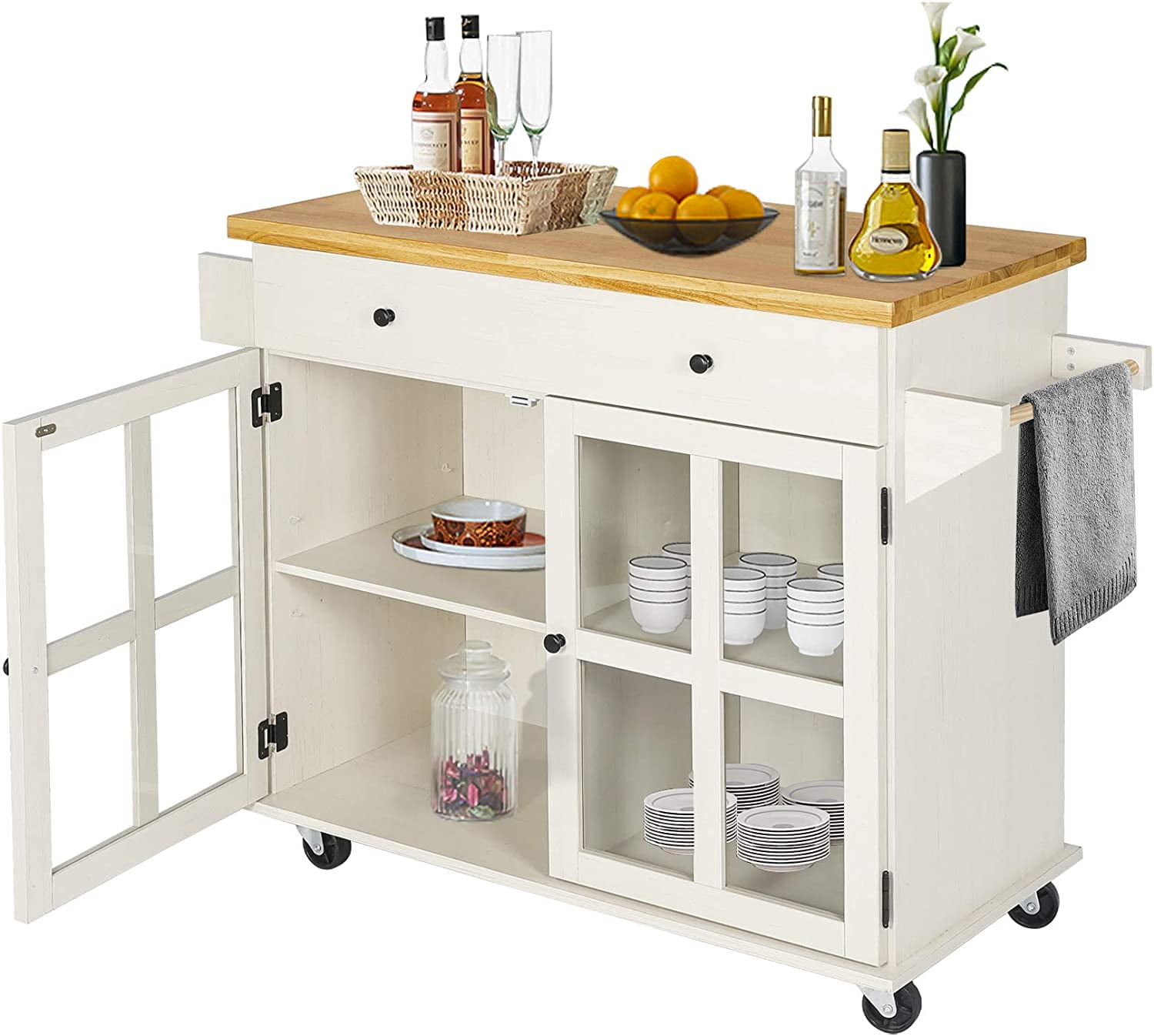 PETSITE Kitchen Island Cart with Storage & Wheels, Rolling Small Island Table with Drawers & Shelves for Home, Black