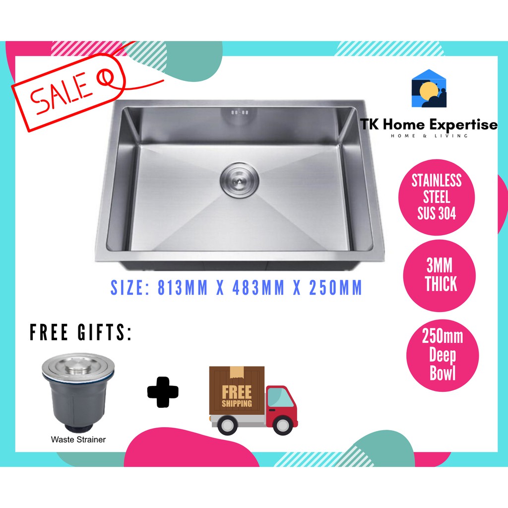 JW MOCHA MKS6045 & MKS6045A Stainless Steel Single Bowl Kitchen Sink Undermount Handmade Deep Home Sinki Dapur Free Gift Sink Basin Stainless Steel ...