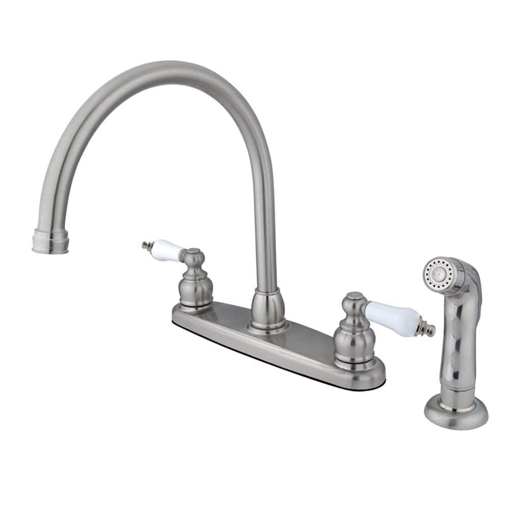 › porcelain-cross-handle-kitchenPorcelain Cross Handle Kitchen Faucets at Faucet.com Heritage Kitchen Faucet with Porcelain Cross Handles and Brass Side Spray Available in 4 finishes $266.47 - $318.47 (3) Compare Kingston Brass KS179.PXBS Heritage Widespread Kitchen Faucet with Porcelain Cross Handles and Brass Side Spray Available in 4 finishes $240.47 - $259.97 (3) Compare Kingston Brass KS279.PXBS